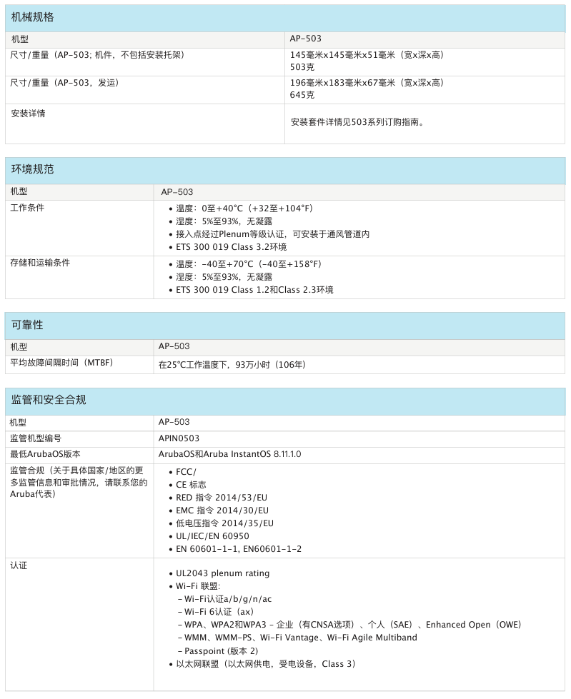室內(nèi)中密度Wi-Fi 6接入點AP-503提供兼具高成本效益與高性能的連接,可以幫助各類組織應(yīng)對因移動使用需求提高、轉(zhuǎn)向云或物聯(lián)網(wǎng)環(huán)境而帶來的設(shè)備增長挑戰(zhàn)。503 系列的實際聚合數(shù)據(jù)速率高達(dá) 1.775 Gbps(HE80/HE40),可以為學(xué)校、中型辦公室和零售賣場等中等密度的場地和工作場所提供所需的連接速度和可靠性。